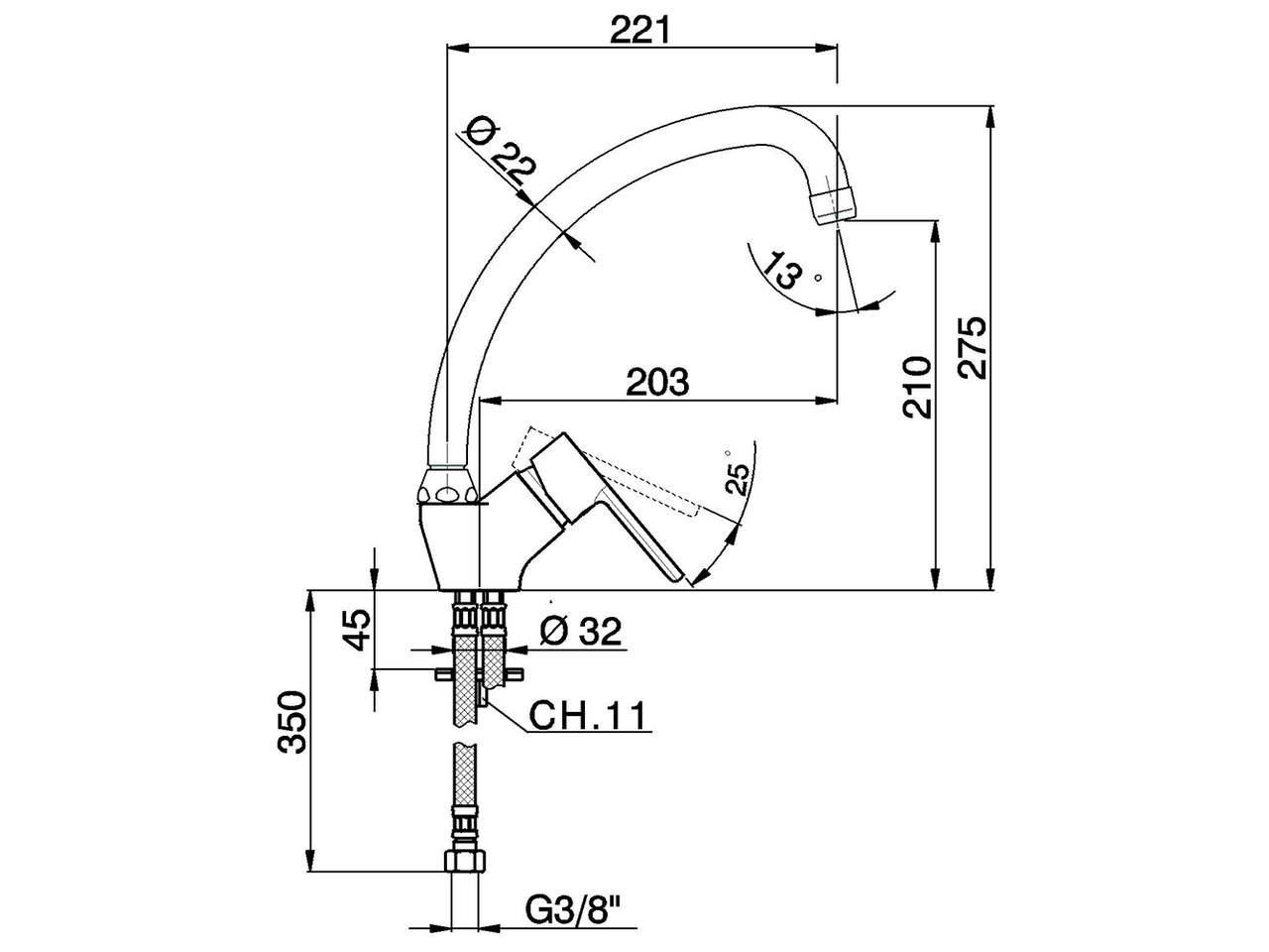 Single lever sink mixer,swivel spout,G.3/8" stainless steel flexible hoses