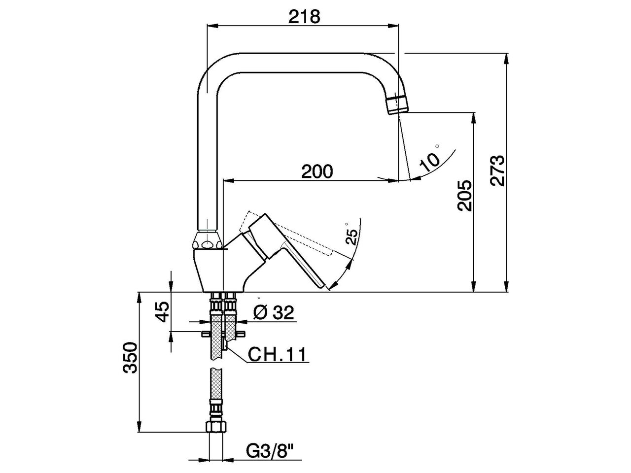 Single lever sink mixer,swivel spout,G.3/8" stainless steel flexible hoses