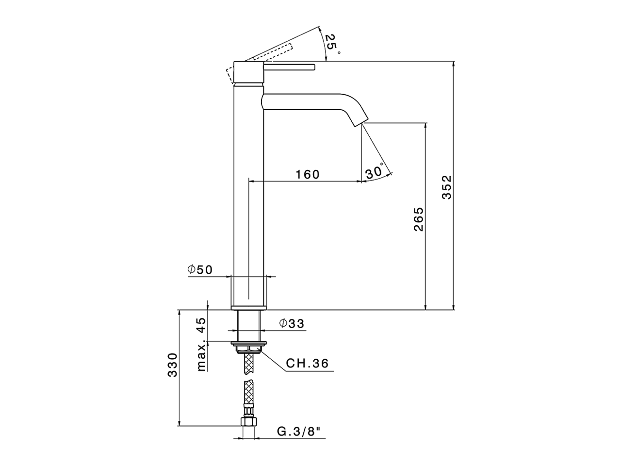 Single lever tall basin mixer,without waste,G.3/8" stainless steel flexible hose