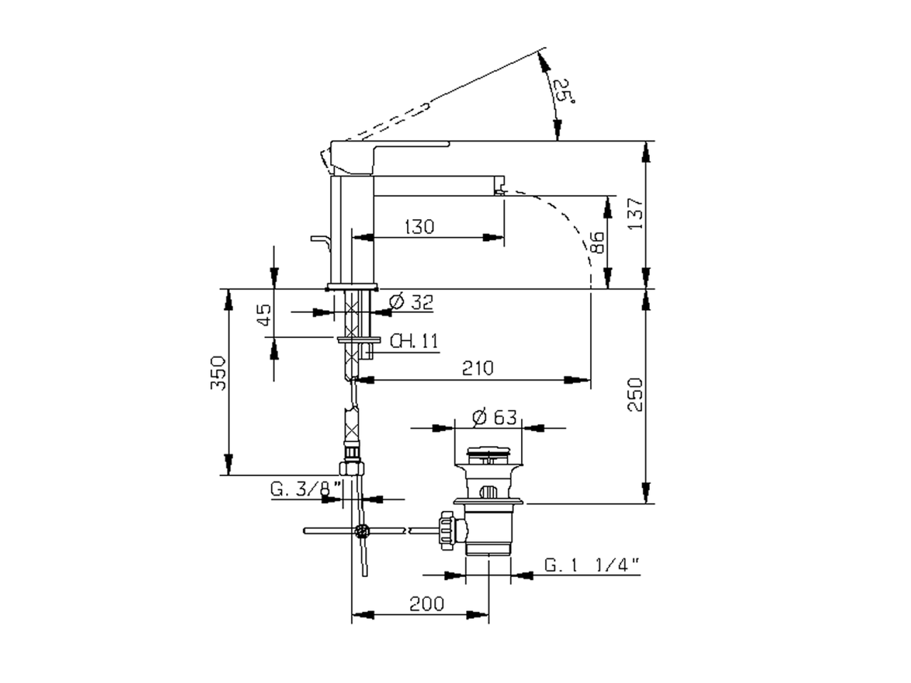 Single lever washbasin mixer,with 1"1/4 automatic pop-up waste,G.3/8" stainless steel flexible hoses,spout plate available in chrome or smoked finishin