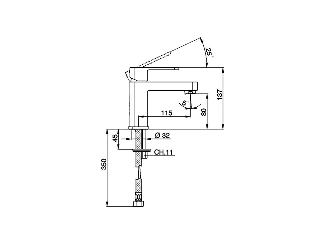Single lever washbasin mixer,without automatic pop-up waste,G.3/8" stainless steel flexible hoses