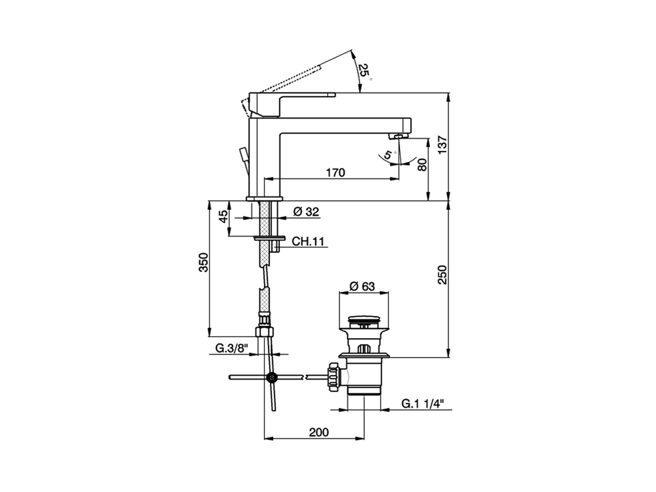 Single lever washbasin mixer,with 1"1/4 automatic pop-up waste,G.3/8" stainless steel flexible hose