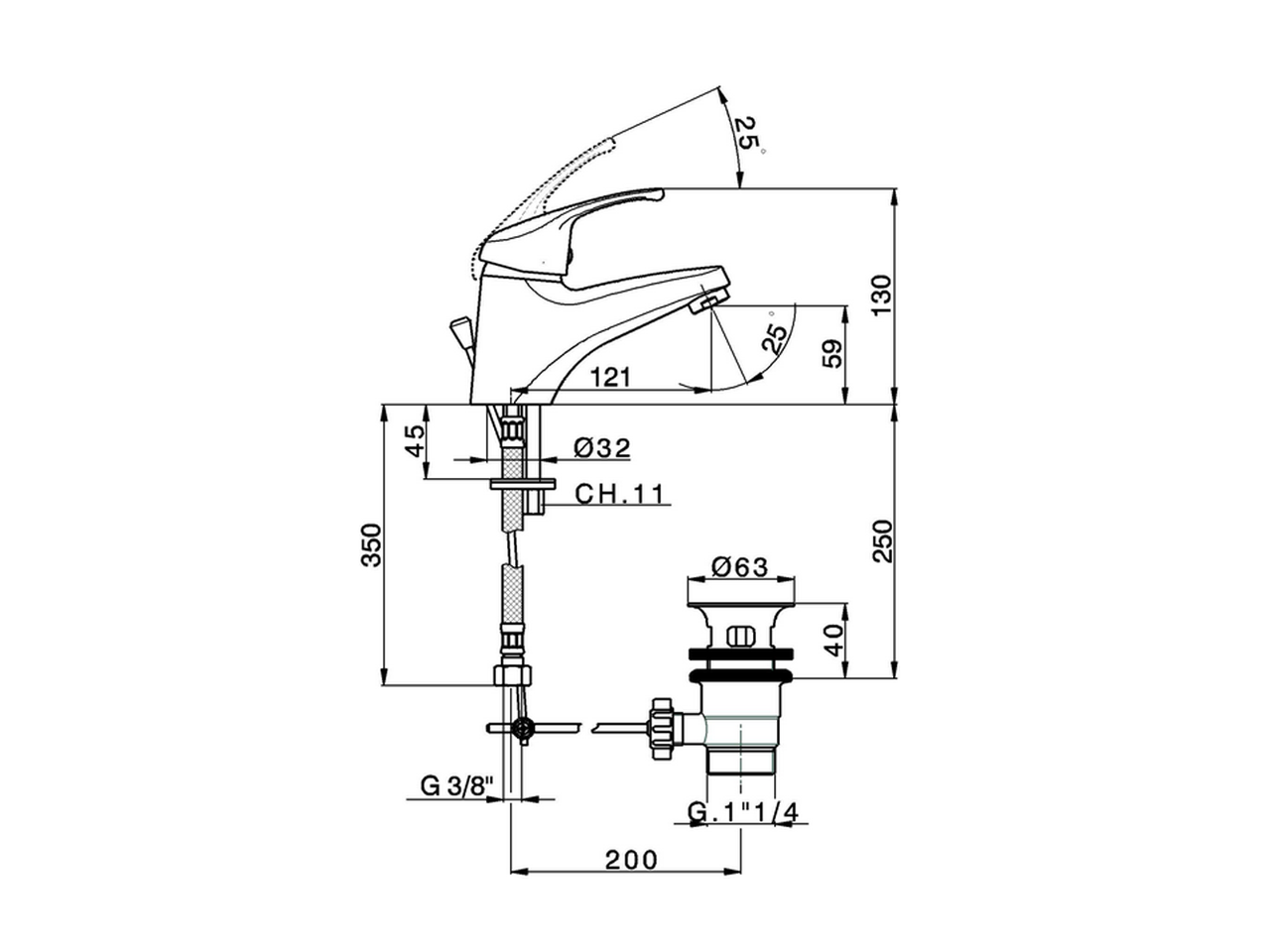 Single lever washbasin mixer EnergySave,with 1"1/4 automatic pop-up waste,G.3/8" stainless steel flexible hoses