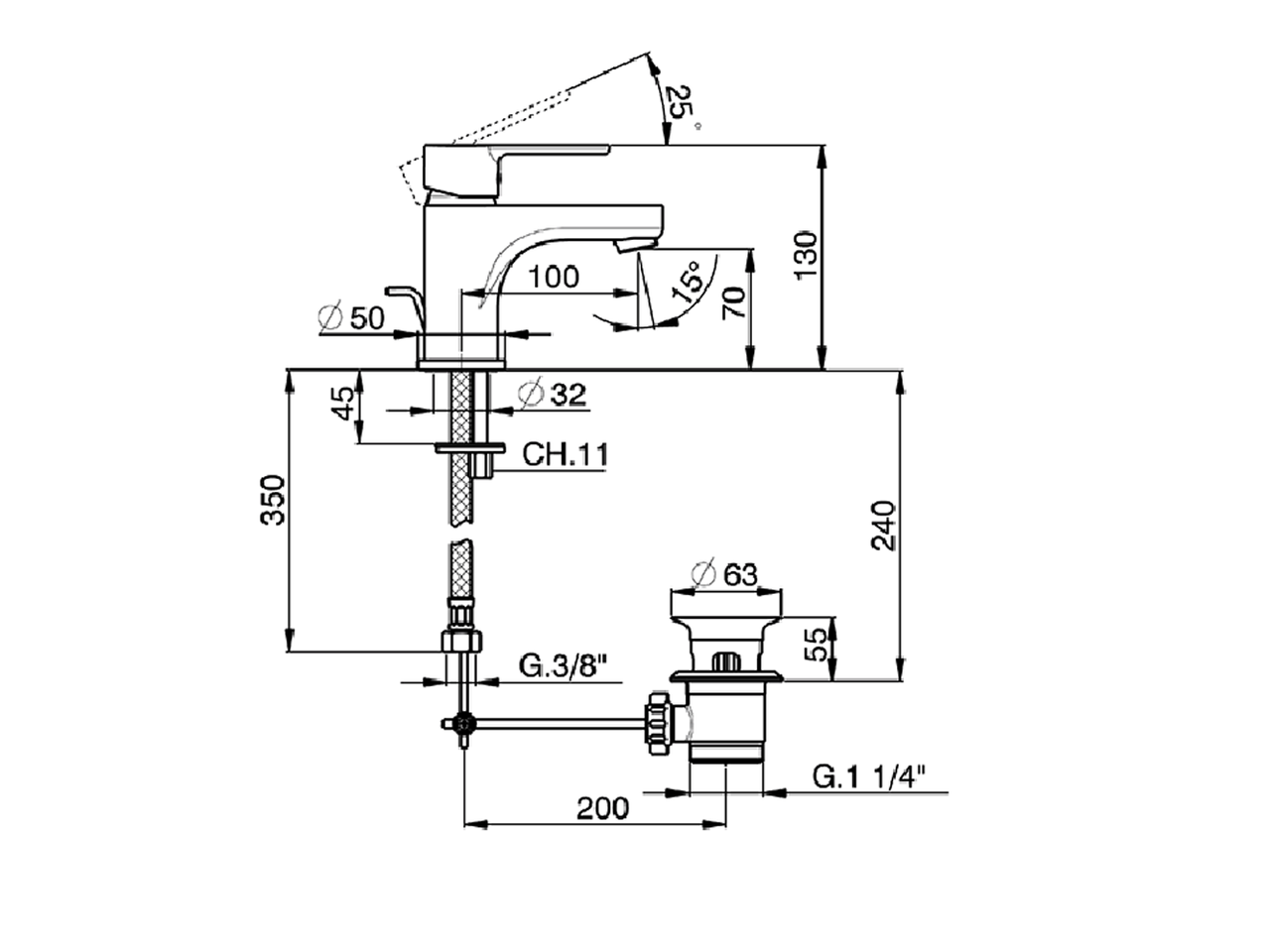 Single lever washbasin mixer,with 1"1/4 automatic pop-up waste,G.3/8" stainless steel flexible hoses