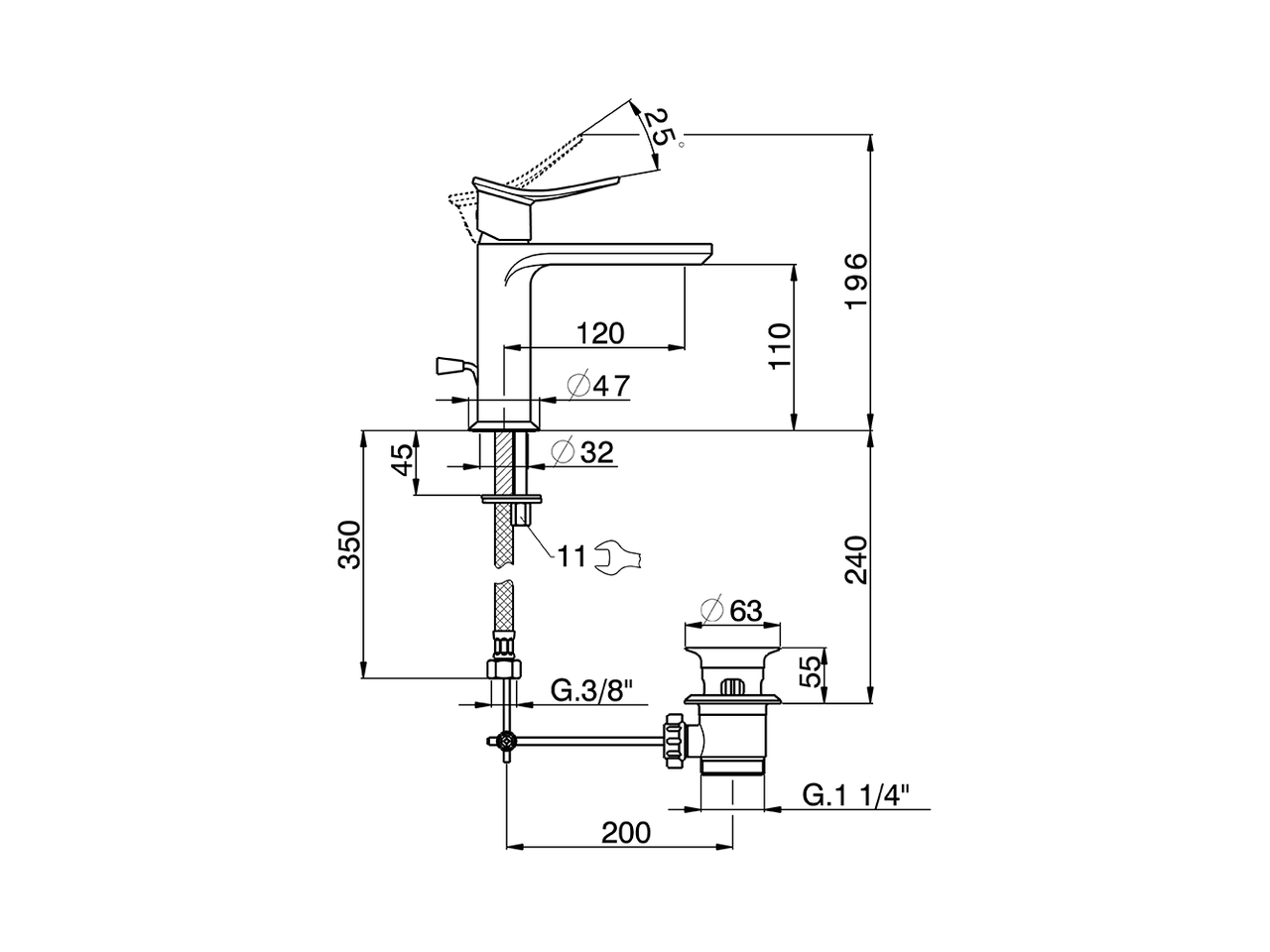 Single lever washbasin mixer,with 1"1/4 automatic pop up waste,G.3/8" stainless steel flexible hoses
