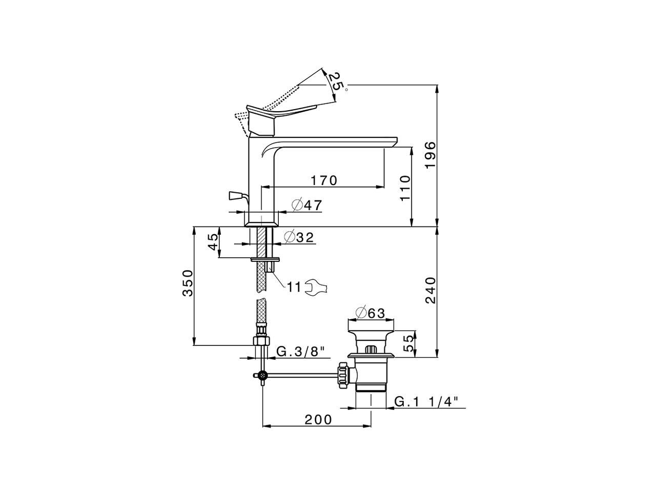 Single lever washbasin mixer,with 1"1/4 automatic pop-up waste,G.3/8" stainless steel flexible hose