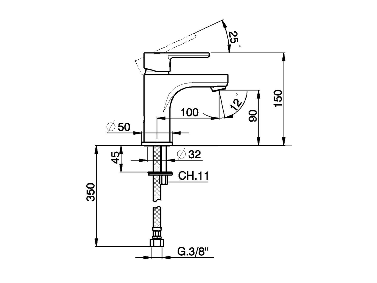 Single lever washbasin mixer " large " EnergySave,without automatic pop-up waste,G.3/8" stainless steel flexible hoses