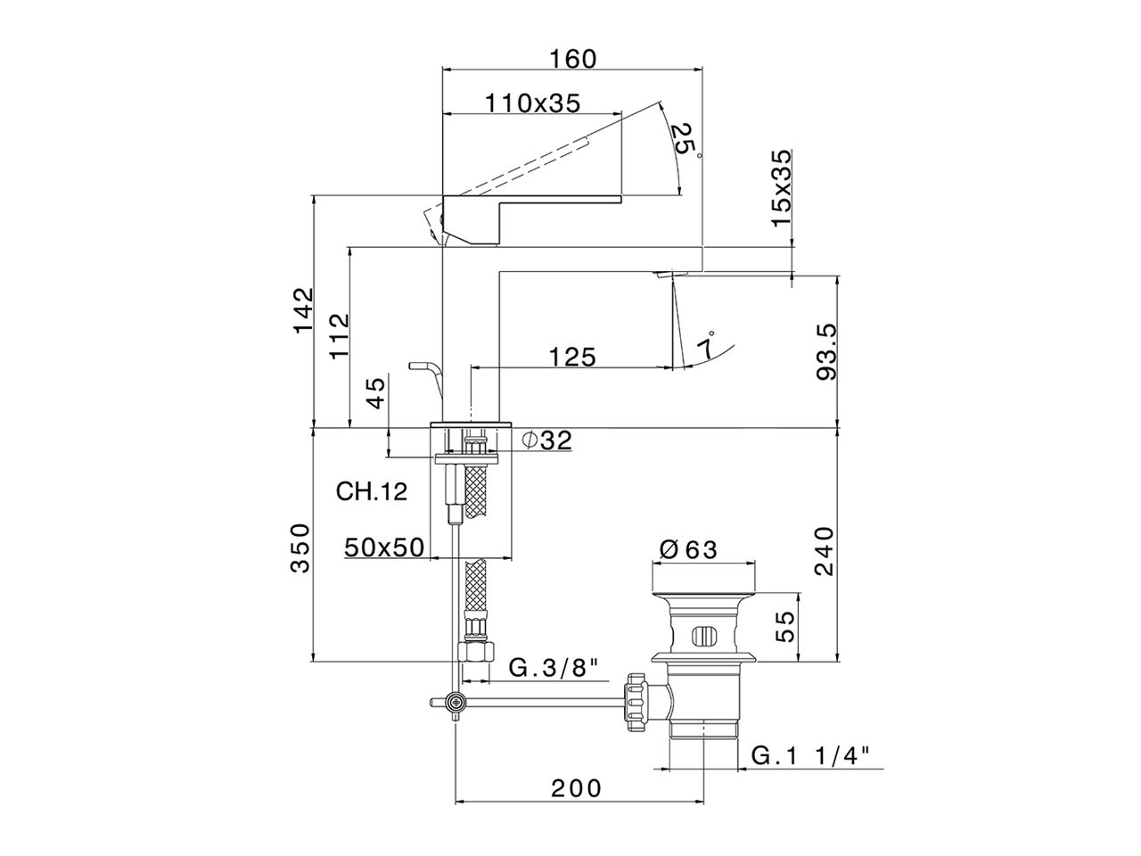 Single lever washbasin mixer,with 1"1/4 automatic pop-up waste,G.3/8" stainless steel flexible hoses