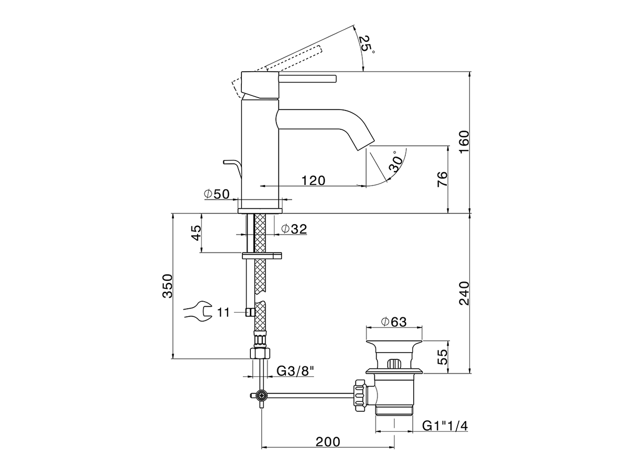 Single lever washbasin mixer,with 1"1/4 automatic pop-up waste,G.3/8" stainless steel flexible hoses