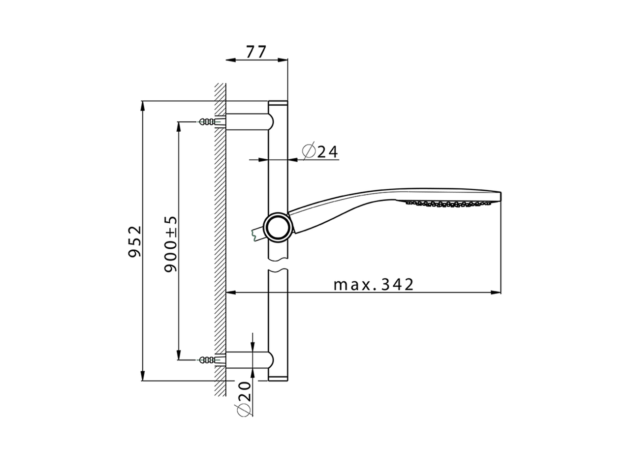 Slide rail shower set,90 cm Brass slide bar Ø24 w/brass slidingbracket,130 mm ABS Emotion one spray handshower,150 cm SUPREME smooth flexible hose