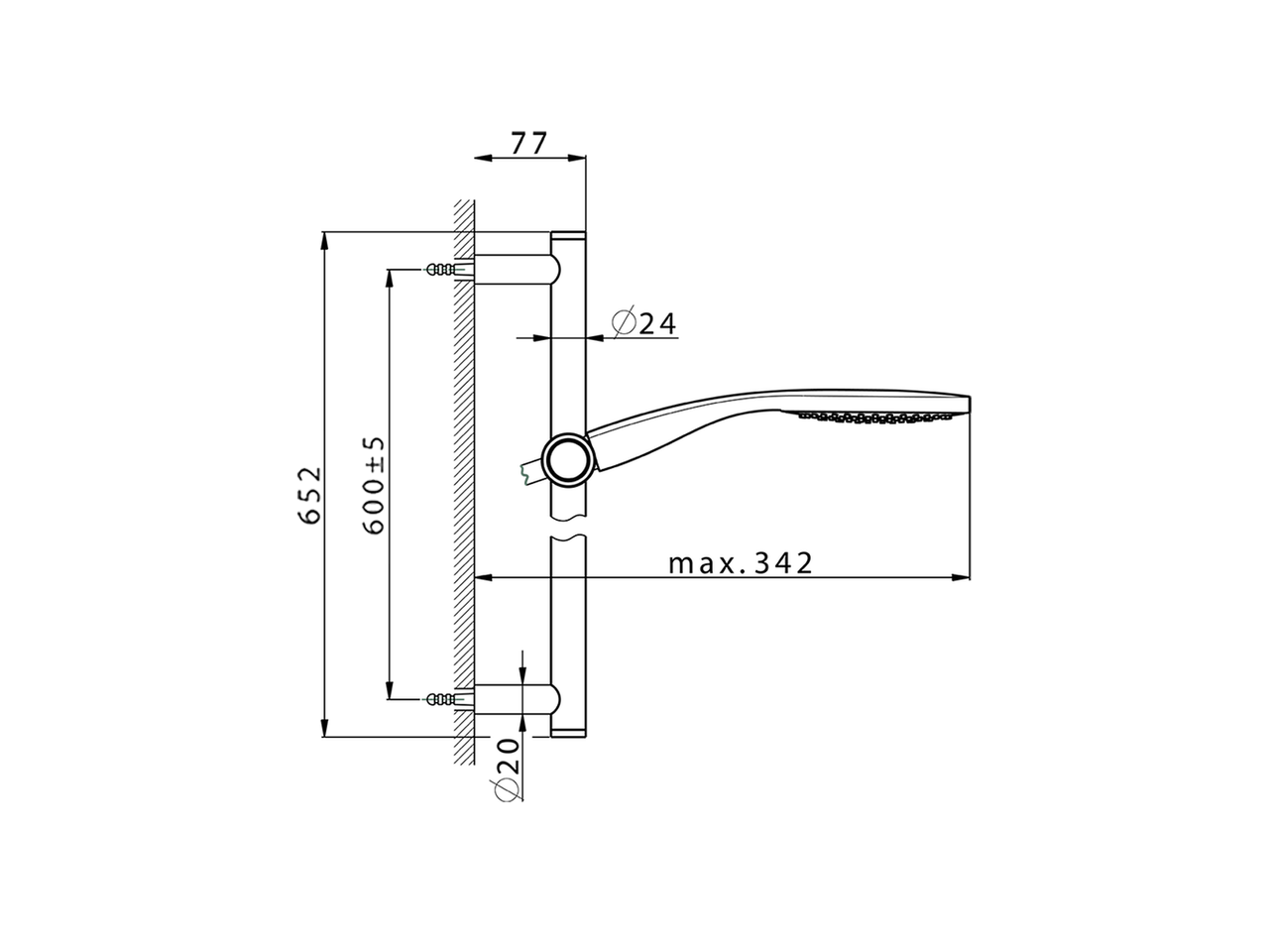 Slide rail shower set,60 cm Brass slide bar Ø24 w/brass slidingbracket,130 mm ABS Emotion one spray handshower,150 cm SUPREME smooth flexible hose