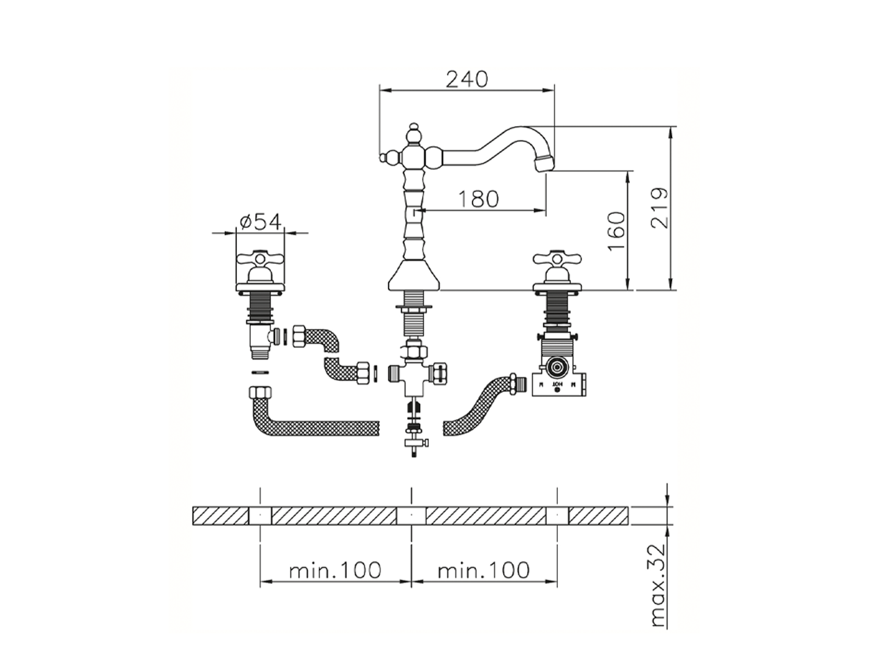 Thermostatic 3-hole washbasin mixer CROISETTE_CST72010