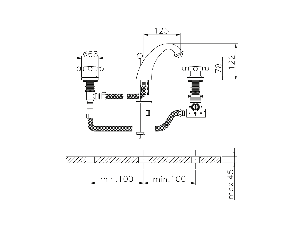 Thermostatic 3-hole washbasin mixer THERMO_VTT71010