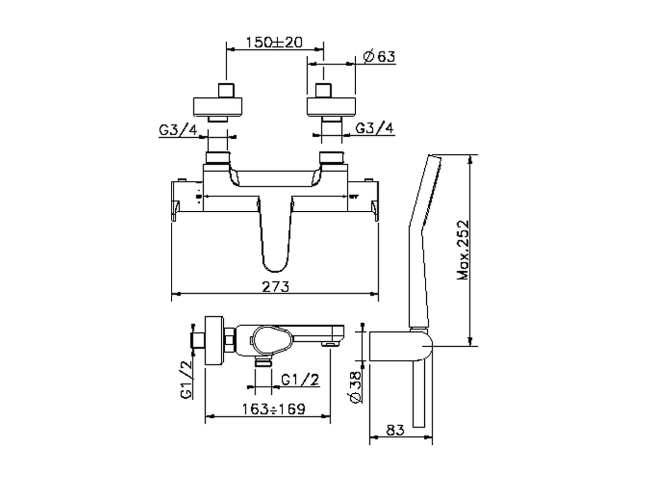 Thermostatic bath mixer, with shower set H3_H3D21015