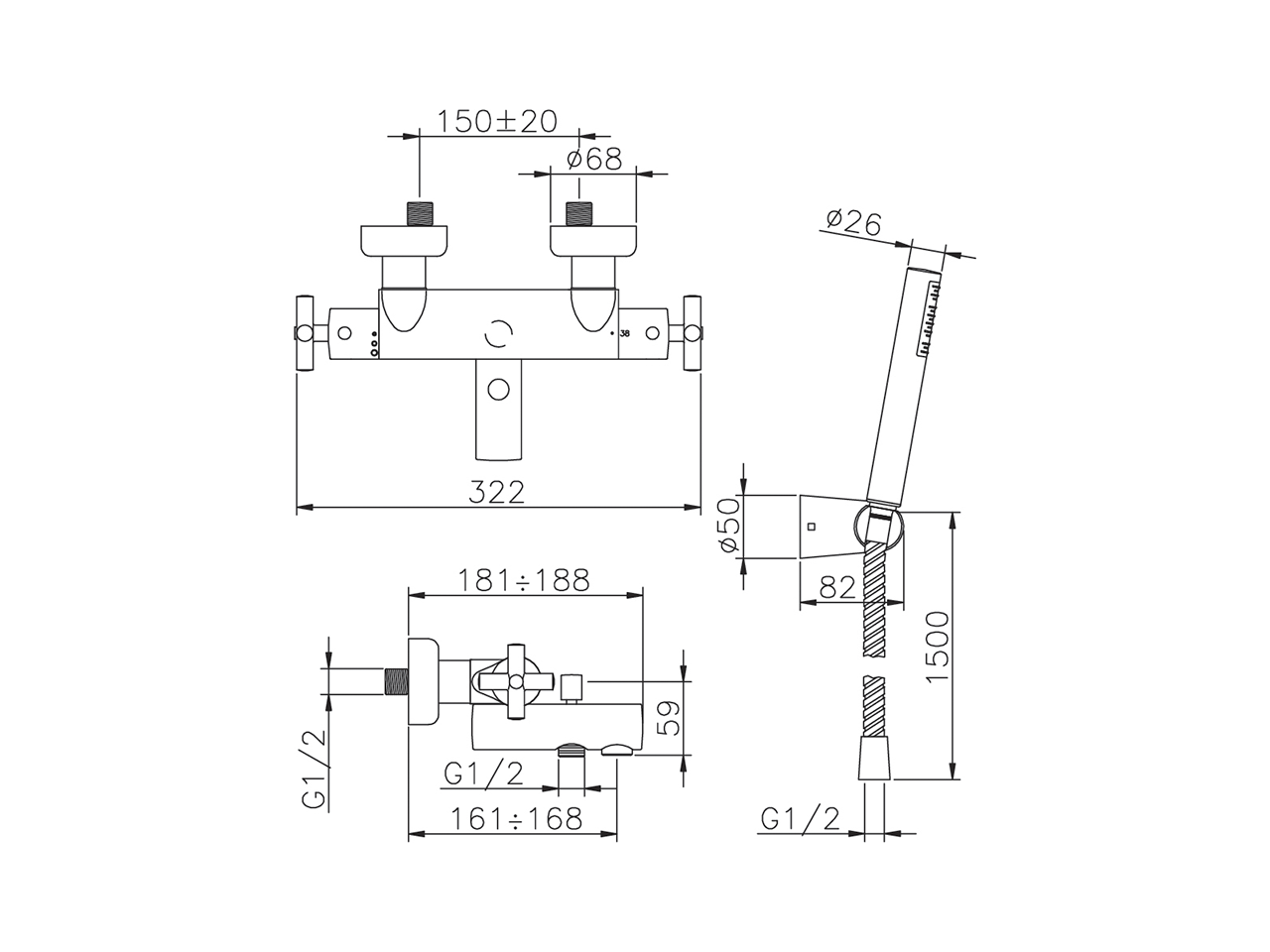 Thermostatic bath mixer, with shower set SUITE_SUD27010
