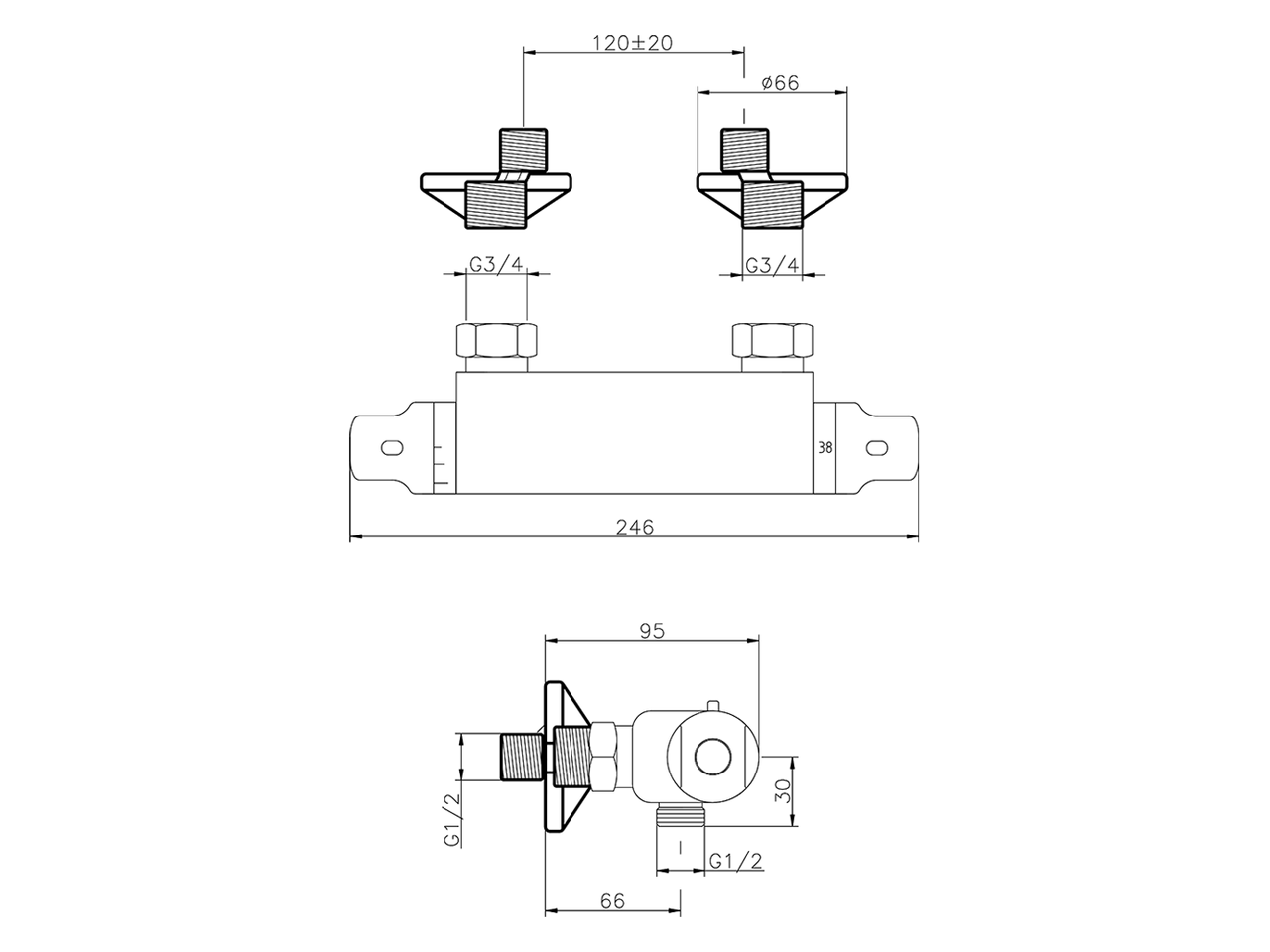 Thermostatic shower mixer,without shower set,120 mm center