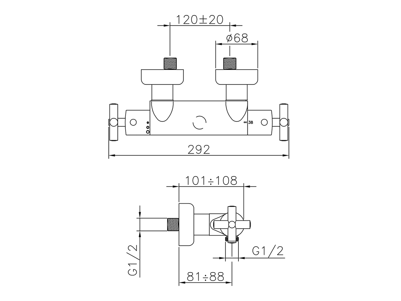 Thermostatic shower mixer,without shower set,120 mm center,1/2" M flexible connection