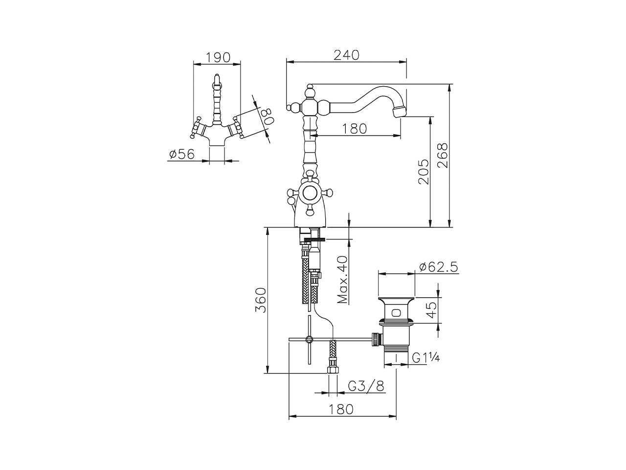 Thermostatic washbasin mixer,with 1"1/4 automatic pop up waste,swivel Spout,G.3/8" Stainless Steel Flexible