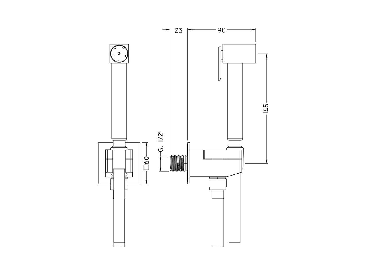 Toilet-jet handshower set,square wall bracket,single water opening,Brass Toilet-jet handshower,120 cm PVC flexible hose