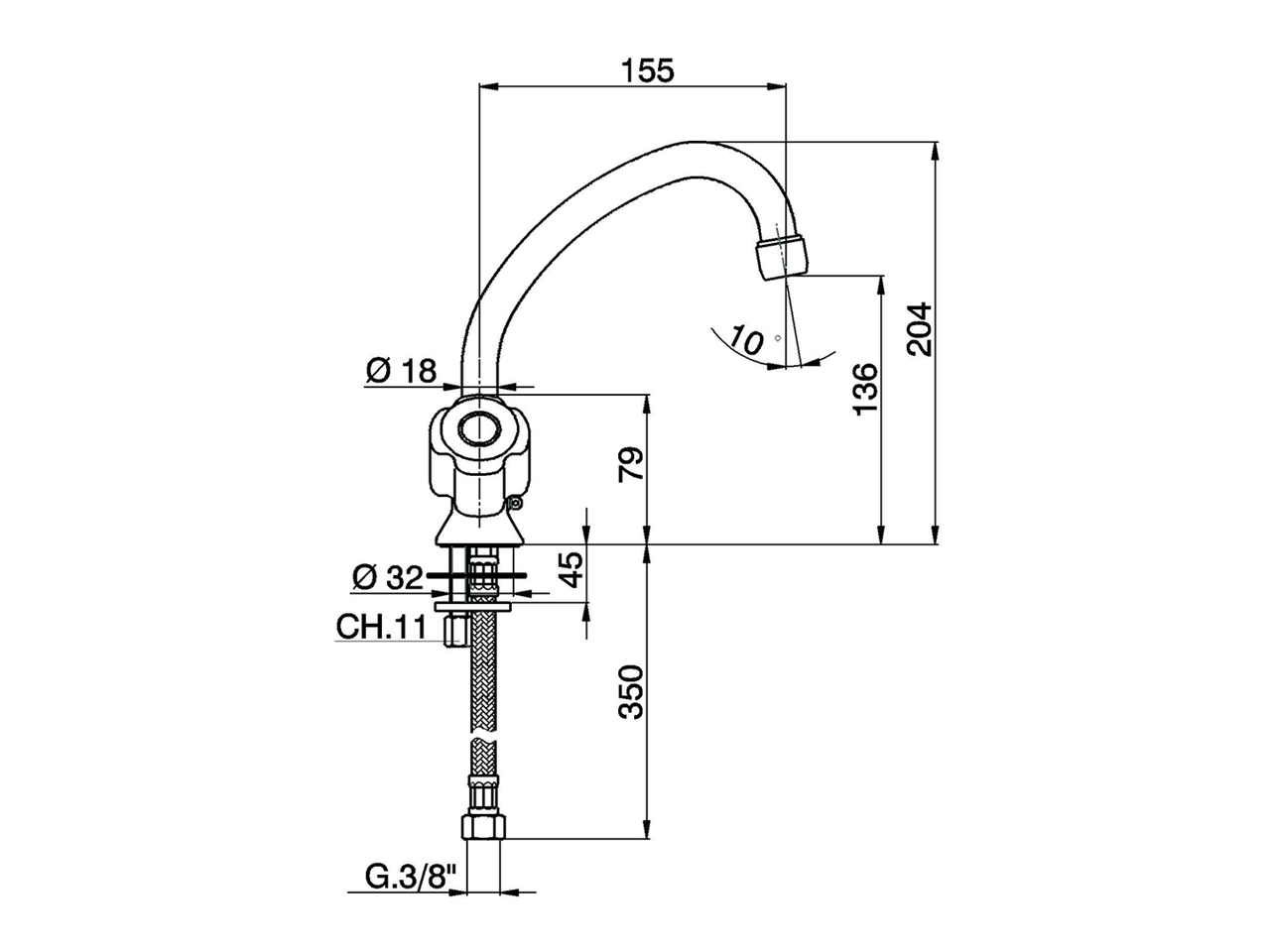 Washbasin mixer,with 1"1/4 automatic pop-up waste,G.3/8" stainless steel flexible hoses,without handles
