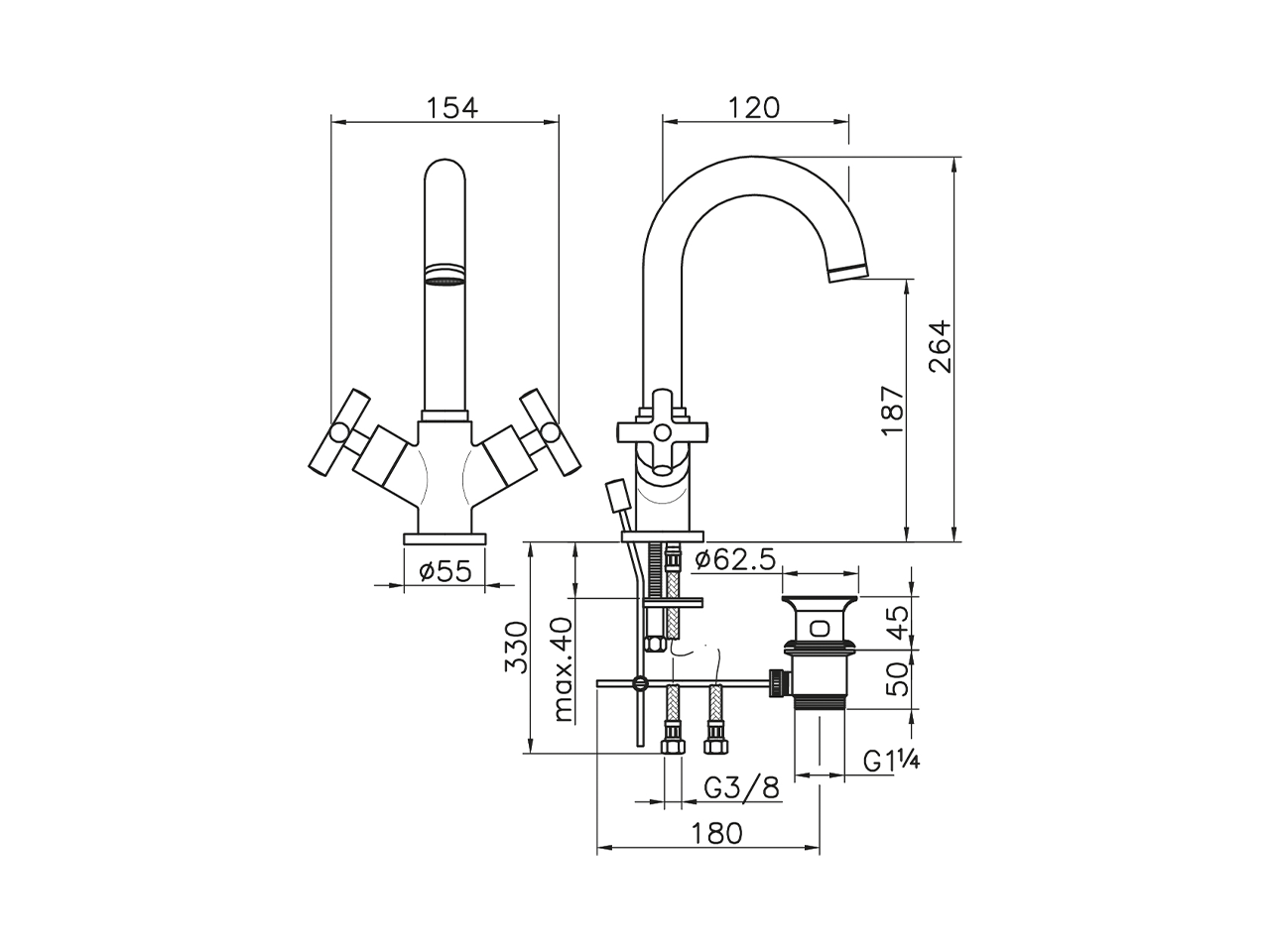 Washbasin mixer,with 1"1/4 automatic pop up waste,G.3/8" stainless steel flexible hoses